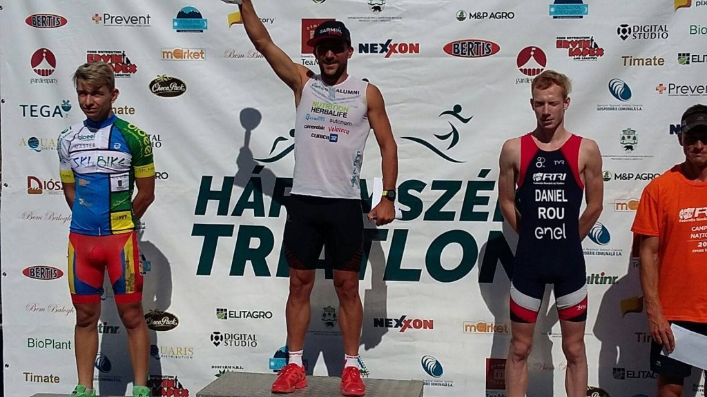 Dacă Google Translate nu greșește, așa s-ar zice în limba maghiară ”eu sunt un campion”. Spun asta în maghiară, pentru că sîmbătă am devenit campion național în Șugaș Băi, unde a avut loc Cupa Haromszek, Campionatului național de triatlon Xterra of road. Distanțe: 1500 metri înot, 30,3 km MTB și 7,52 km alergare. Am înotat într-un lac de lîngă Valea Crișului. Venind dupa o perioada cu mai putine antrenamente de inot, m-am simțit totuși excelent, și am reușit să ies primul din apă. La bicicletă nu am forțat în prima parte a traseului, dar apoi am început să accelerez. Inainte de a doua tranzitie cu 500m o neintelegere de traseu a deschizatorului de drum m-a facut sa deviez de la traseu, ocolind mai bine de 3,5km . Am revenit, am tras tare-tare, dar asta m-a costat 5 minute, pierdute, plus un consum fizic pe care l-am resimțit la proba de alergare. În a doua tranziție am intrat abia al patrulea. Am decis să schimb strategia de cursă (pînă atunci vroiam să merg într-un ritm confortabil, care să îmi permită doar să cîștig), așadar să forțez puțin pentru a recupera. Cum însă între mine și concurenții din față erau doar vreo 30m, am zis să nu trag prea tare pe prima tură de alergare. Pe a doua tură de alergare l-am ajuns pe cel care conducea cursa. În ultima tură am atacat. M-am desprins și apoi am ținut un ritm care să îmi permită să nu mai fiu ajuns. Nu m-a destabilizat mental ‘’incidentul’’ de la proba de bicicletă, din contră m-a motivat să regîndesc cursa și să adopt cea mai bună strategie posibilă. Totul e bine cînd se termină cu bine. Și mai ales cînd devii din nou campion național. Mulțumesc tuturor pentru susținere.